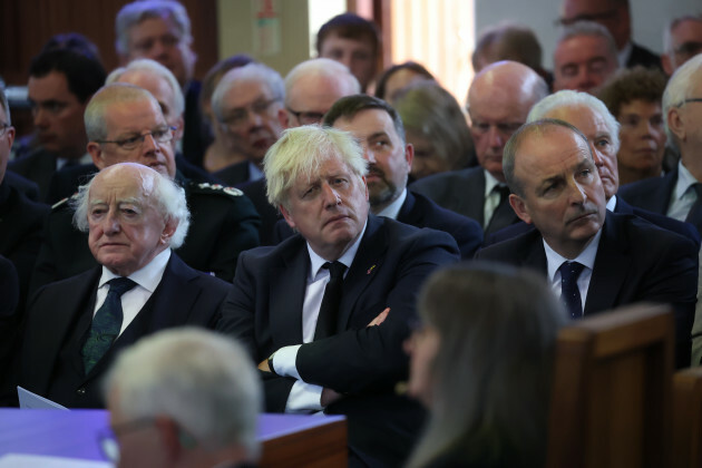 Taoiseach Micheál Martin and UK Prime Minister Boris Johnson have arrived at Harmony Hill Presbyterian Church for the funeral.